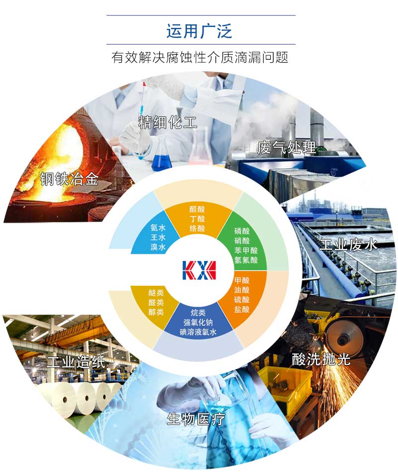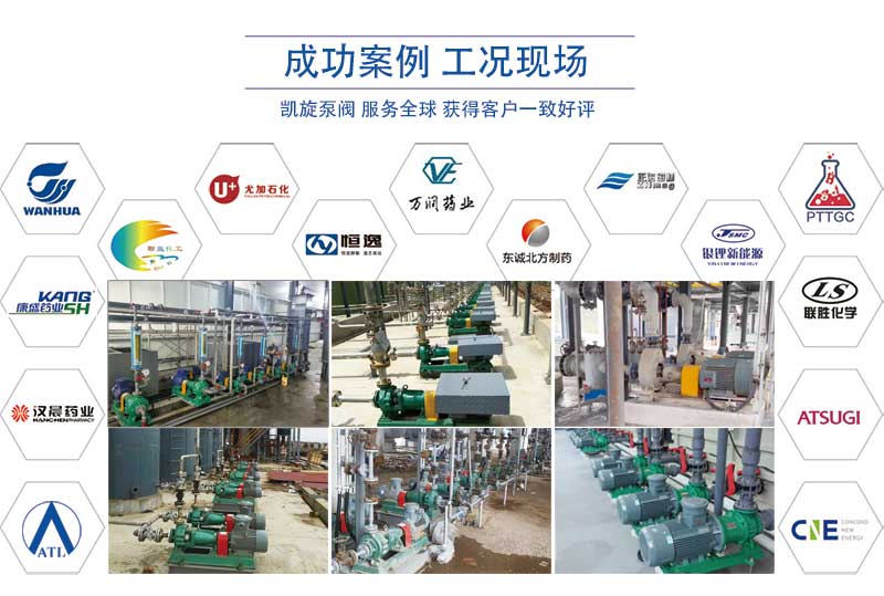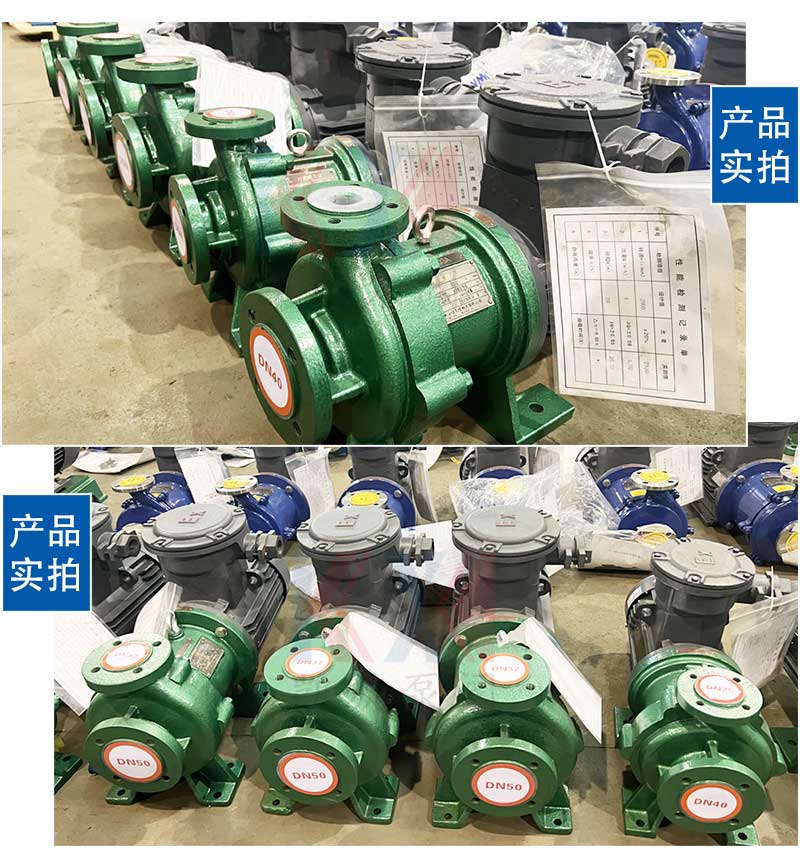 IMC氟塑料磁力泵,利用內外永磁體傳動,實現扭矩無接觸傳遞,當電動機帶動外轉子總成旋轉時,通過磁場的作用磁力線穿過隔離套帶動內轉子總成和葉輪同步旋轉,隔離套將介質完全密封,從而達到無泄漏輸送介質的目的。過流部件采用氟塑料及高純度碳化硅制成,具有良好的耐腐蝕性和密封性,可輸送甲醇、乙醇、甲苯、氯苯、苯酚、乙醚等有機溶劑和易燃易爆揮發性強腐蝕性強的介質。