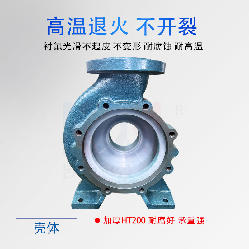 IHF次氯酸鈉泵,泵體采用金屬外殼內襯氟塑料(F46/PFA),泵蓋、葉輪均用金屬嵌件外包氟塑料(F46/PFA)整體燒結壓制而成,軸封采用外裝式波紋管機械密封,靜環選用氧化鋁陶瓷(或碳化硅),動環采用四氟填充材料,耐腐耐磨密封性好。泵的進出口均采用鑄鋼體加固,以增強了泵的耐壓性。 該泵具有耐腐、耐磨、耐高溫、不老化,機械強度高、運轉平穩、結構先進合理、密封性能可靠、拆卸檢修方便、使用壽命長等優點。適用于-20℃~120℃溫度條件下輸送任意濃度的硫酸、鹽酸、氫氟酸、硝酸、次氯酸鈉等強酸強腐蝕介質而不受損。