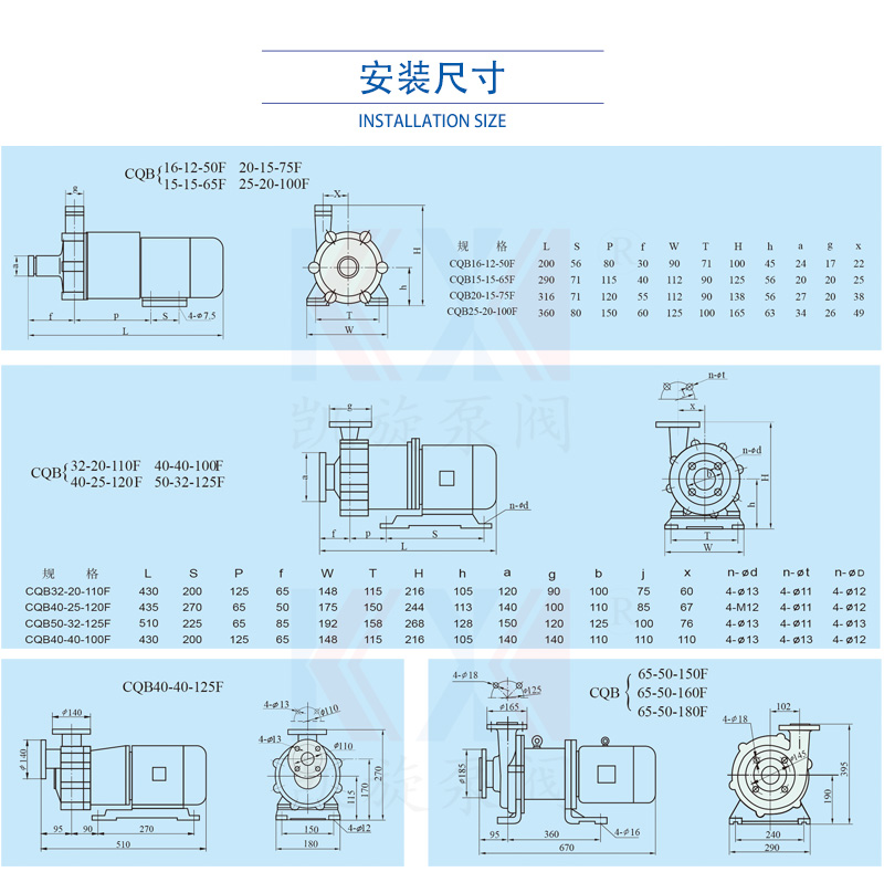 CQB-F全氟磁力泵簡稱為“CQB磁力泵”可細分為二類一種是全氟泵體的CQB-F型另一種是耐壓性高的泵殼是鋼襯材質,采用磁力耦合傳動,不存在動密封點,因此徹底杜絕了一般軸傳動式離心泵軸封外跑、冒、滴、漏的現象的氟塑料磁力泵類型。
