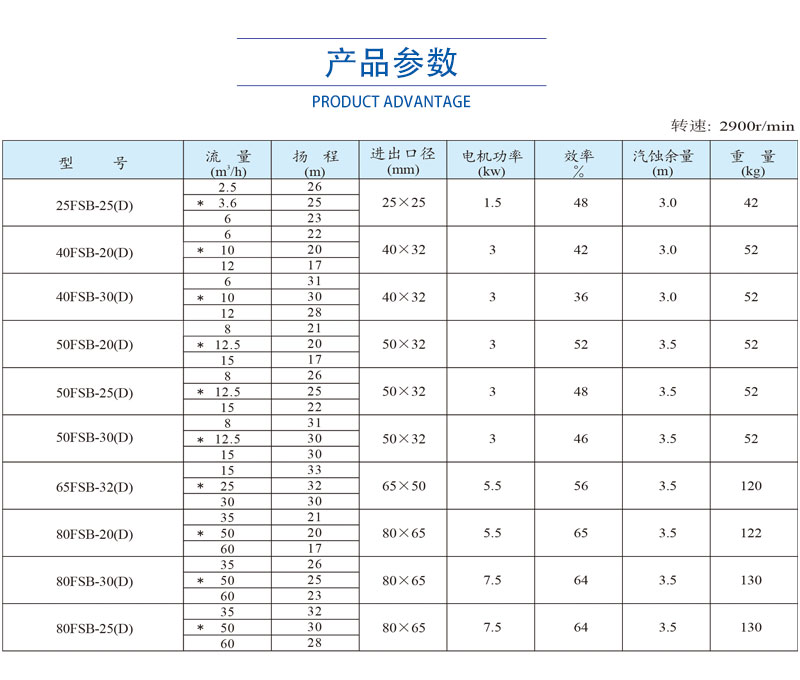 FSB(D)型離心泵,過流部件全部采用氟塑料合金制造,結構緊湊,操作簡單,價格低廉。且與FSB(L)型離心泵泵殼、葉輪、機械密封均可互換使用,適用于石油、化工、制藥、農(nóng)藥、酸洗、染料、油漆、冶煉、造紙、電鍍、食品等行業(yè)耐腐蝕性液體輸送。FSB(D)型氟塑料合金離心泵采用外裝式四氟波紋管機械密封,擁有多層保護,延長了機封使用壽命,對于輸送含雜質(zhì)顆粒介質(zhì)時,可配用無冷卻水單端面硬對硬(碳化硅對碳化硅)機械密封,所以用戶選型時需考慮到介質(zhì)中的固體含量